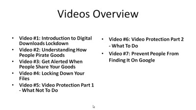 This unique video course is designed especially for online marketers who want to run an online business and focus on making sales, but not deal with all the hassles and frustrations chasing up their illegally shared content.