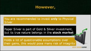 Just like Gold, there are 2 types of Silver Investment; Physical Silver and Paper Silver. When it comes to Physical Silver, of course, you could hold onto the Physical Silver itself but not Paper Silver. Physical Silver investment are determined by the amount of Silver Coins and Silver Bars that you possessed.