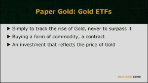 In this section, we will only be covering one of the most sought after Paper Gold Investment; the Gold ETFs. The main key point of this investment is that you are not required to own the physical Gold, only contracts.