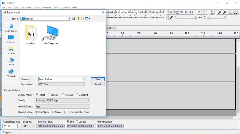 • Once you're done with the recording, don't forget to save the file in MP3 format (also, it's a good habit to cross-check whether the file is working or not!)