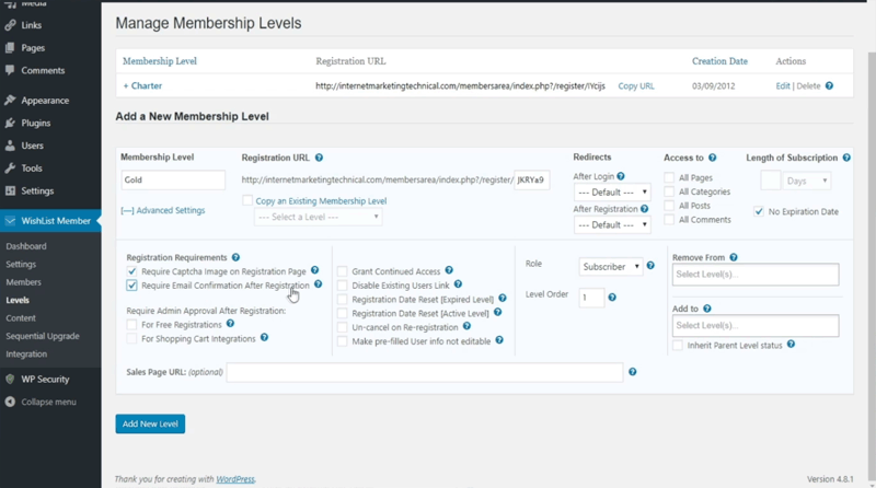 How to create a new membership level within Wishlist
