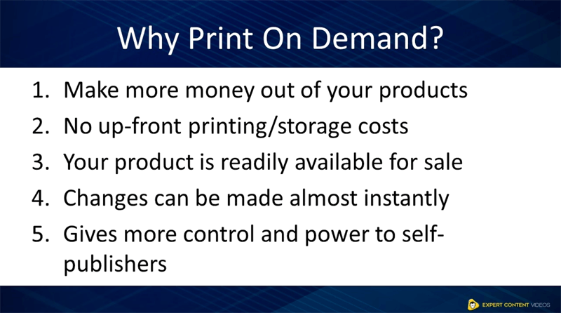 • What are the 5 key benefits that 'Print on Demand' offers (???and you shave off hours of hard work.)