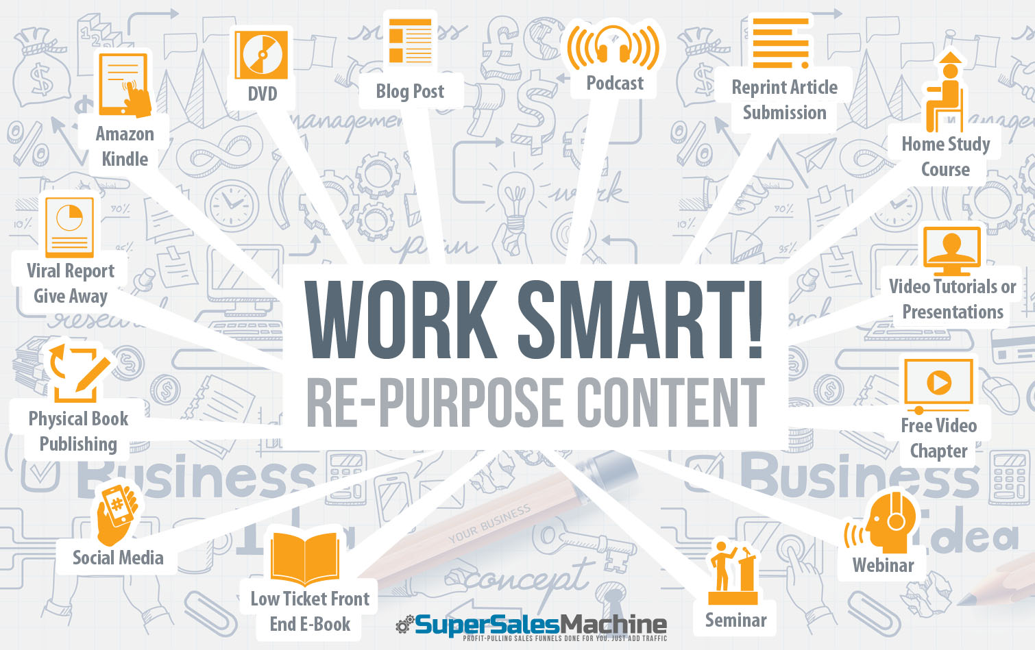 If you're not creating and distributing reports, eBooks, audios, videos or physical versions of your products then you're leaving some serious money on the table! Period.