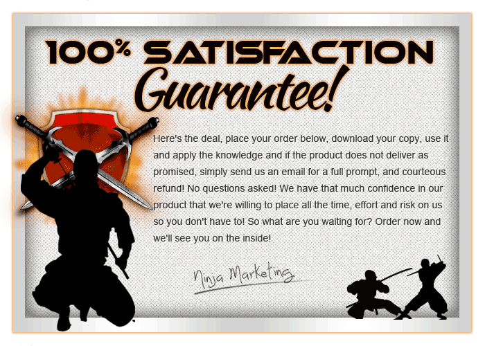 You see having some or part of the pieces of the puzzle is just as good as having none of them. Without complete knowledge you're only kicking yourself and wasting both your time and money. Ninja Marketing puts you on the right track to starting your business. Learn to walk before you run and I can guarantee you'll do very well!